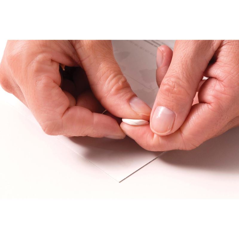Tablete de adeziv pentru lipirea bucăților de hârtie și obiectelor de mici dimensiuni pe marea majoritate a materialelor, inclusiv pe lemn, plastic, sticlă, metal, porțelan și multe altele.