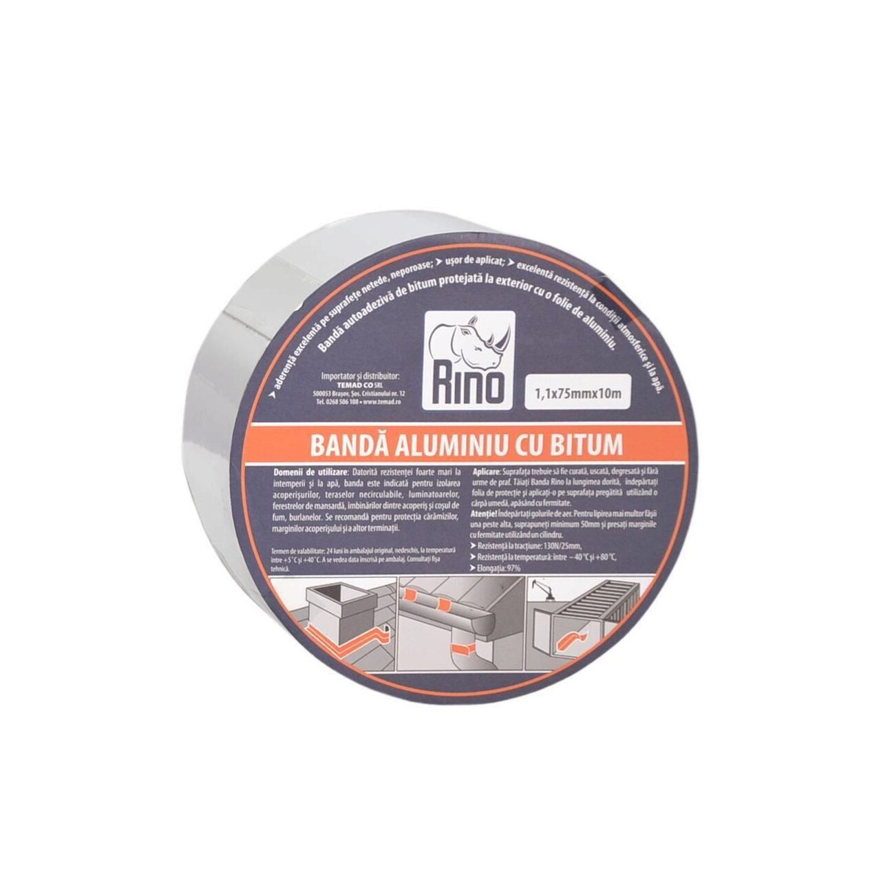 Bandă de etanșare din aluminiu cu bitum RINO, 1mmx75mmx10m