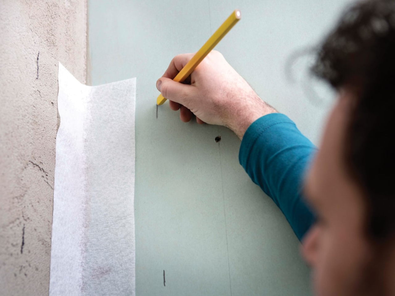 PASUL 1: Determinați cât de sus doriți să realizați hidroizolarea și marcați pe perete.