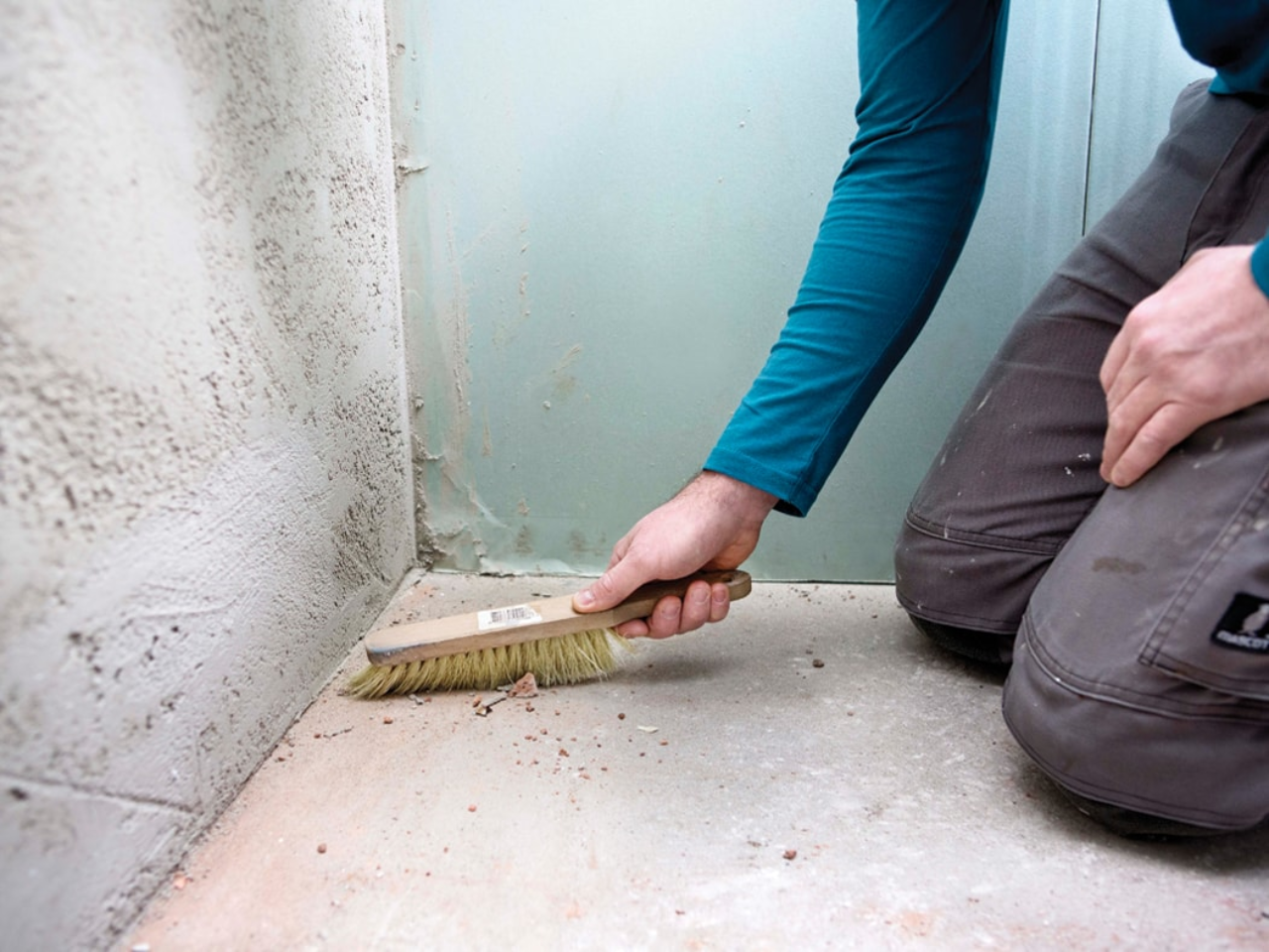 PASUL 5: Aplicați primul strat de Bison Rubber Seal la îmbinări cât și pe aproximativ 1o cm de o parte și de alta, între pereți, între pereți și pardoseală, în jurul detaliilor din baie.