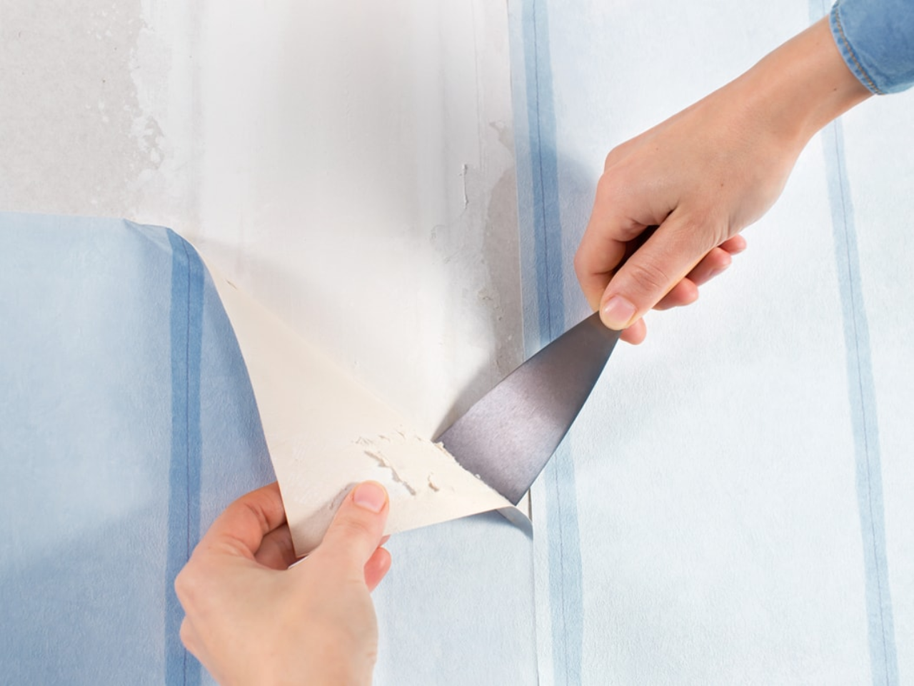 Îndepărtează fâșiile vechi de tapet utilizând un șpaclu (spatulă).