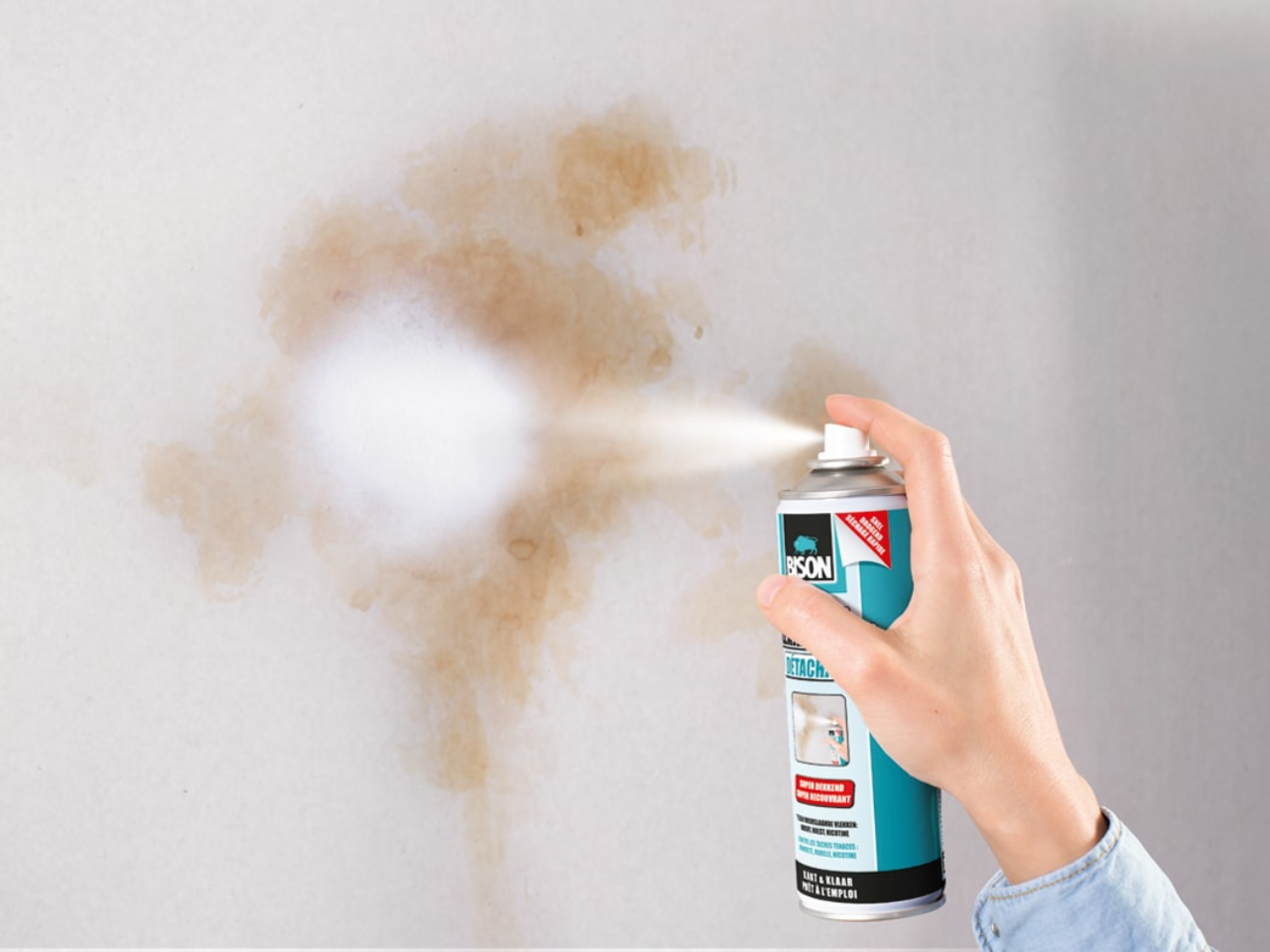 Îndepărtează petele sau orice altă urmă astfel încât ulterior acestea să nu fie vizibile prin noul tapet.