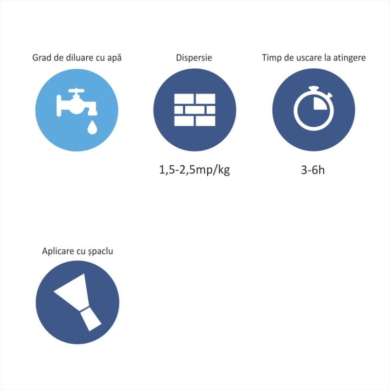 - Are o adeziune puternică, este ușor de folosit și șlefuit, se aplică ușor.