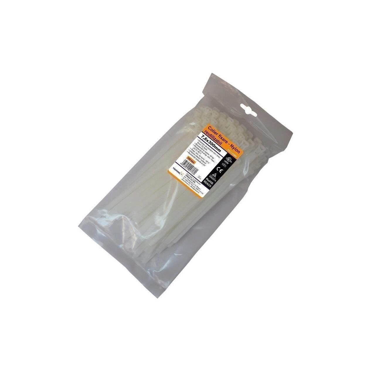 Colier de fixare din nylon, cu dimensiunea de 7, 6 x 300 mm, ambalate în pungi de 100 buc.