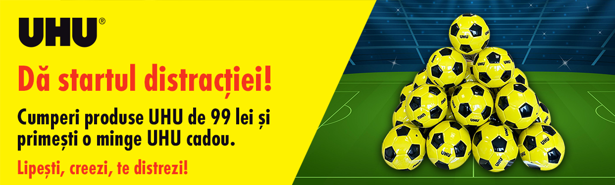 Cumperi produse UHU de minimum 99 lei și primești cadou o minge! Vezi aici regulamentul campaniei.