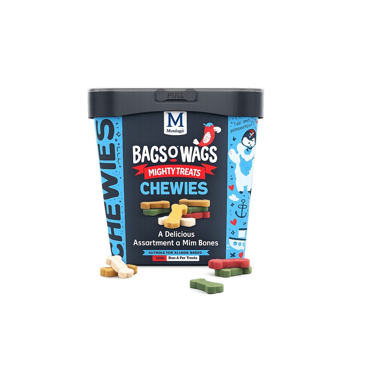 Fie că vrei să răsplătești buna purtare, să motivezi câinele în timpul dresajului sau să-i oferi o gustare între mese, recompensele Bags o’ Wags sunt o alegere excelentă. Sunt realizate din ingrediente de calitate și gândite pentru a fi oferite zi de zi, ca parte a momentelor de răsfăț.