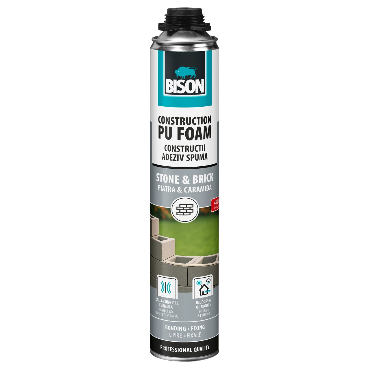 - Îndepărtați imediat reziduurile de spumă neîntărită cu produs de curățare a spumei BISON sau cu acetonă. Reziduurile întărite pot fi îndepărtate doar mecanic.