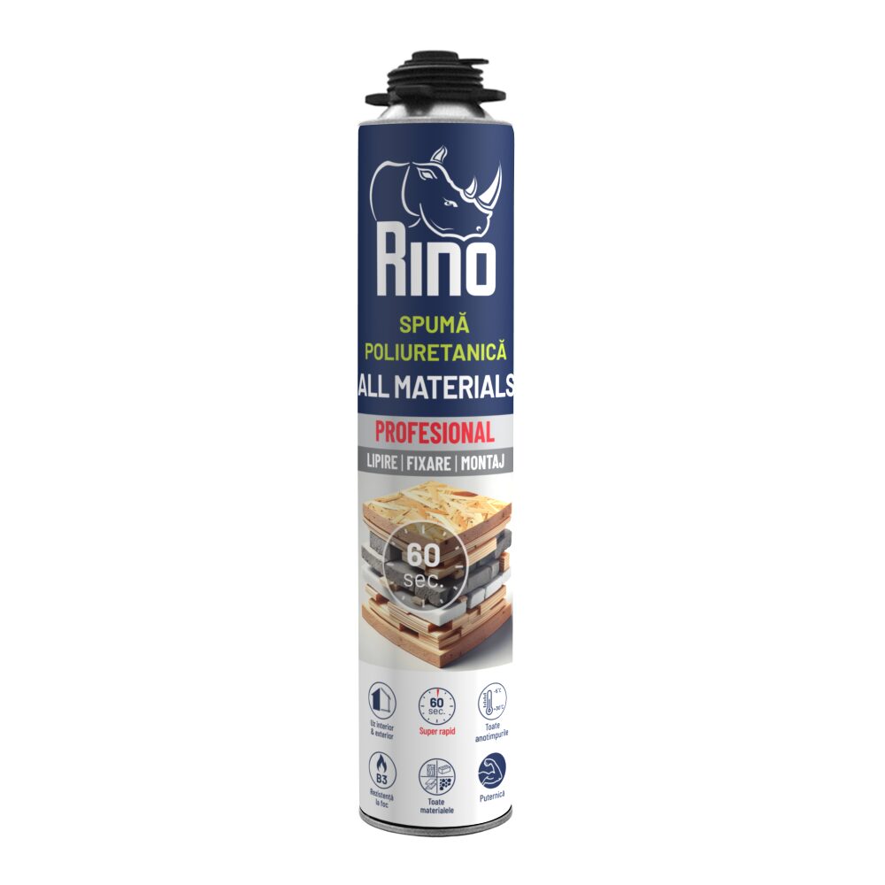 - Spuma neîntărită poate fi curățată de pe scule și suprafețe cu acetonă sau RINO Cleaner.