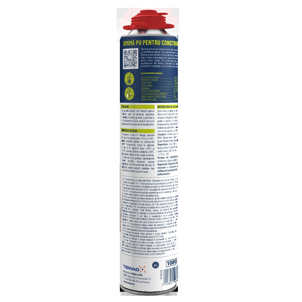 - Rezistența la foc a spumei întărite (conform DIN 4102-1) este B1, expandarea în volum este de până la 30%.
