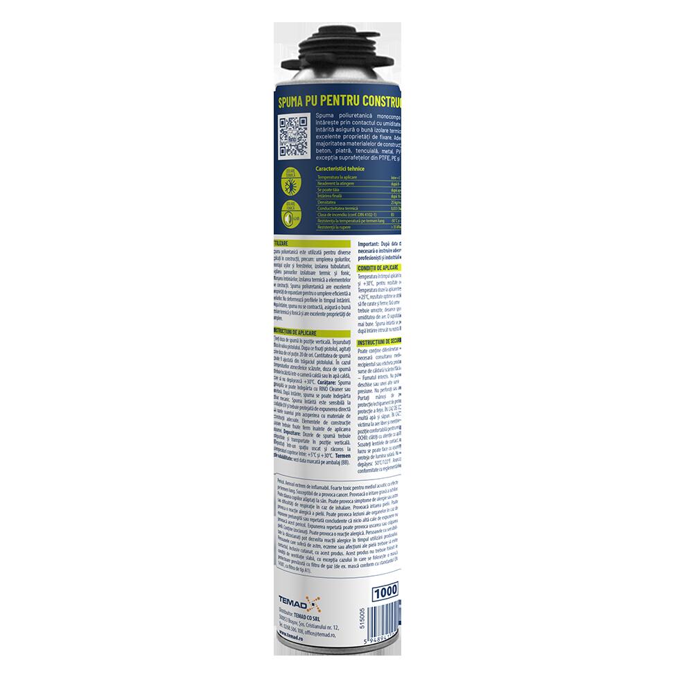- Spuma întărită poate fi îndepărtată numai pe cale mecanică.